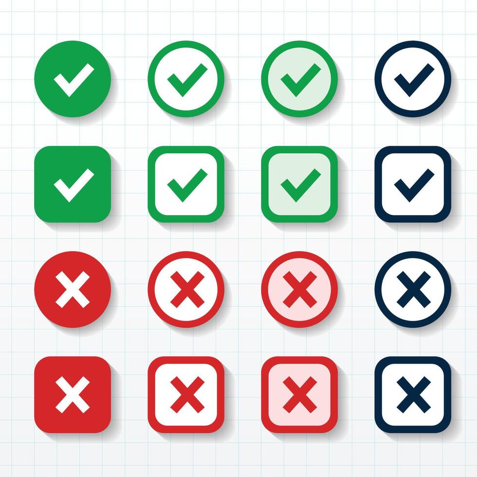 Simple Right or wrong icons. Green tick and red cross checkmarks. Yes or no symbol, approved or rejected icon for user interface Pro Vector