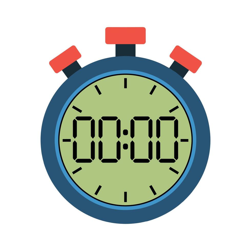 Blue stopwatch with red buttons and digital display showing 0000 timer time Pro Vector