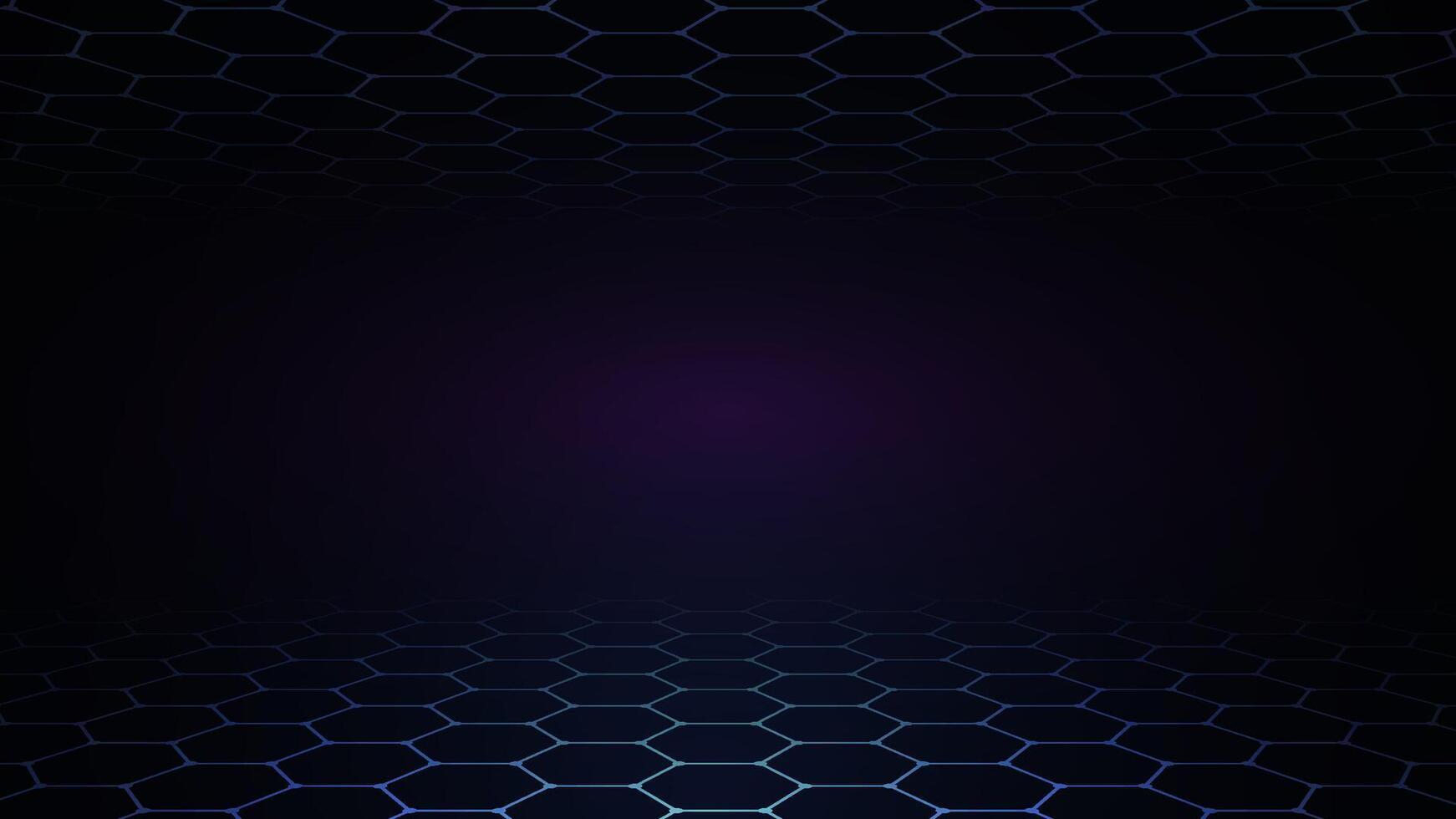 Dark futuristic hexagon grid background with glowing gradient light, ideal for technology and digital concepts Pro Vector