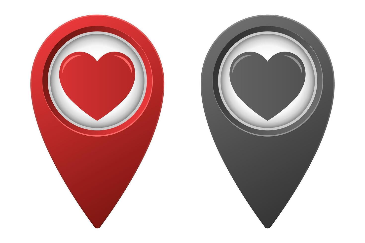 Active red and inactive gray map pointer or marker with simple heart icon Pro Vector