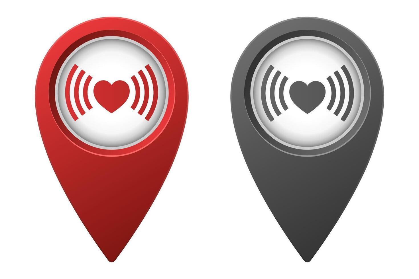 Active red and inactive gray map pointer or marker with wifi heart icon Pro Vector