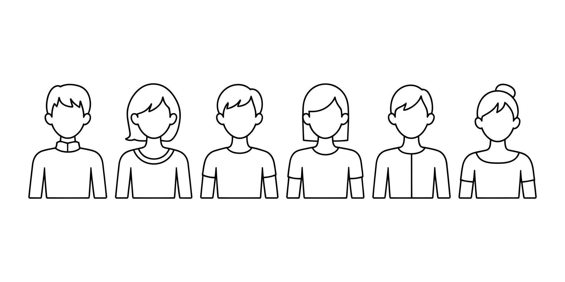 Simple continuous line drawing of diverse people busts in a row illustration Pro Vector
