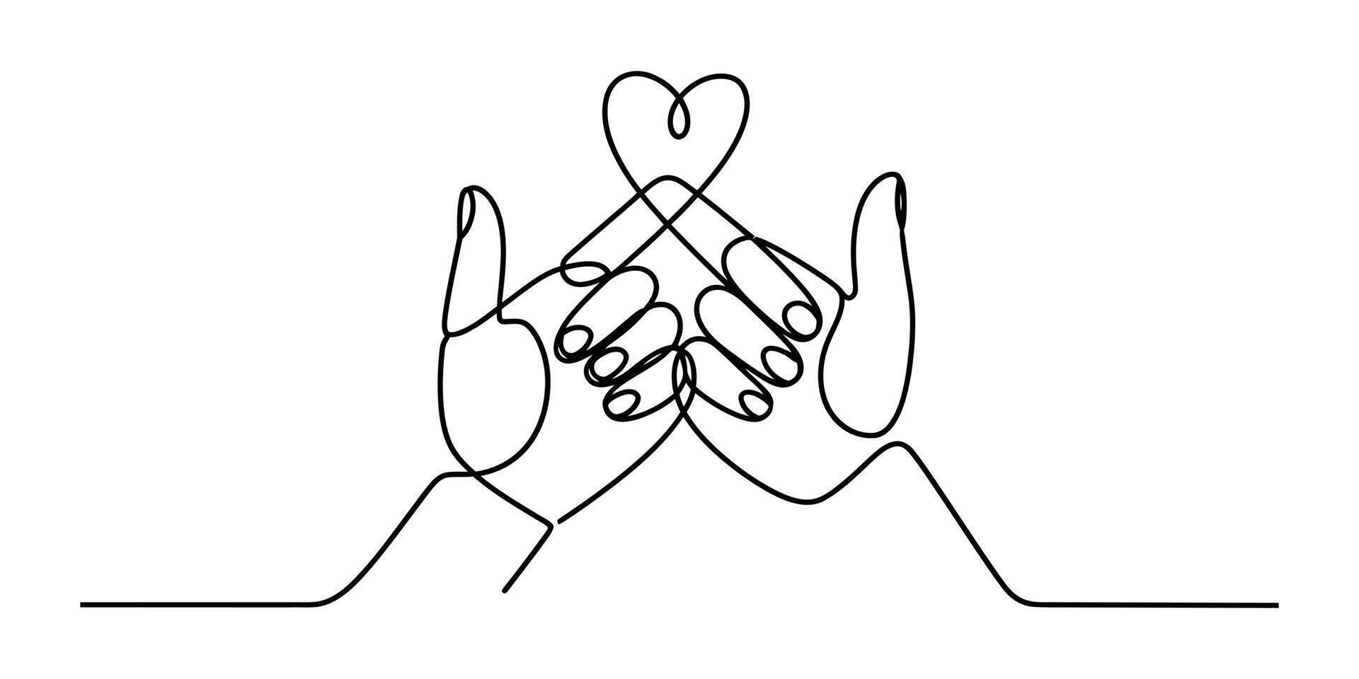 Minimalist continuous line drawing of two hands forming a heart shape illustration Pro Vector