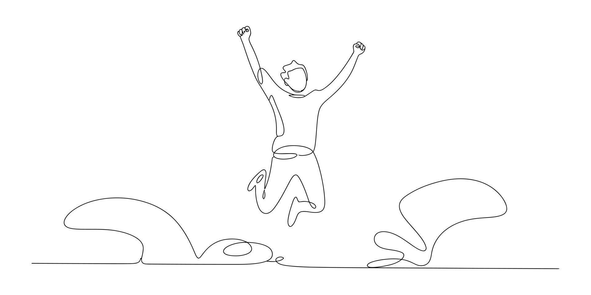 A joyful person jumping high in a simple continuous line drawing style Illustration Pro Vector