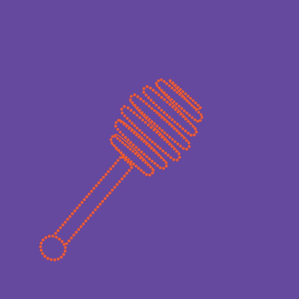 Stylized dotted of a dropper or pipette with a rounded tip and elongated handle, set against a solid vector