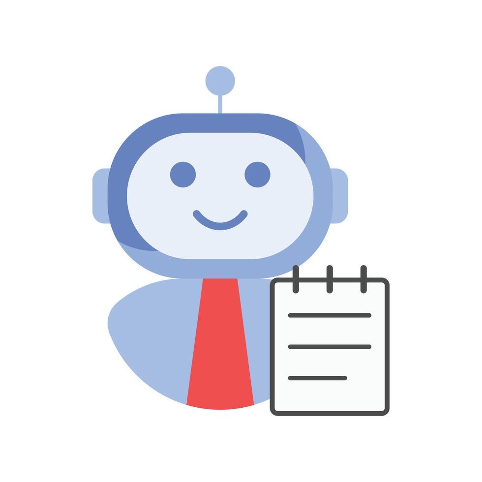 Professional assistant icon showing an ai with tie and notepad symbol. Perfect for office support, task management, and productivity assistant visuals. Pro Vector