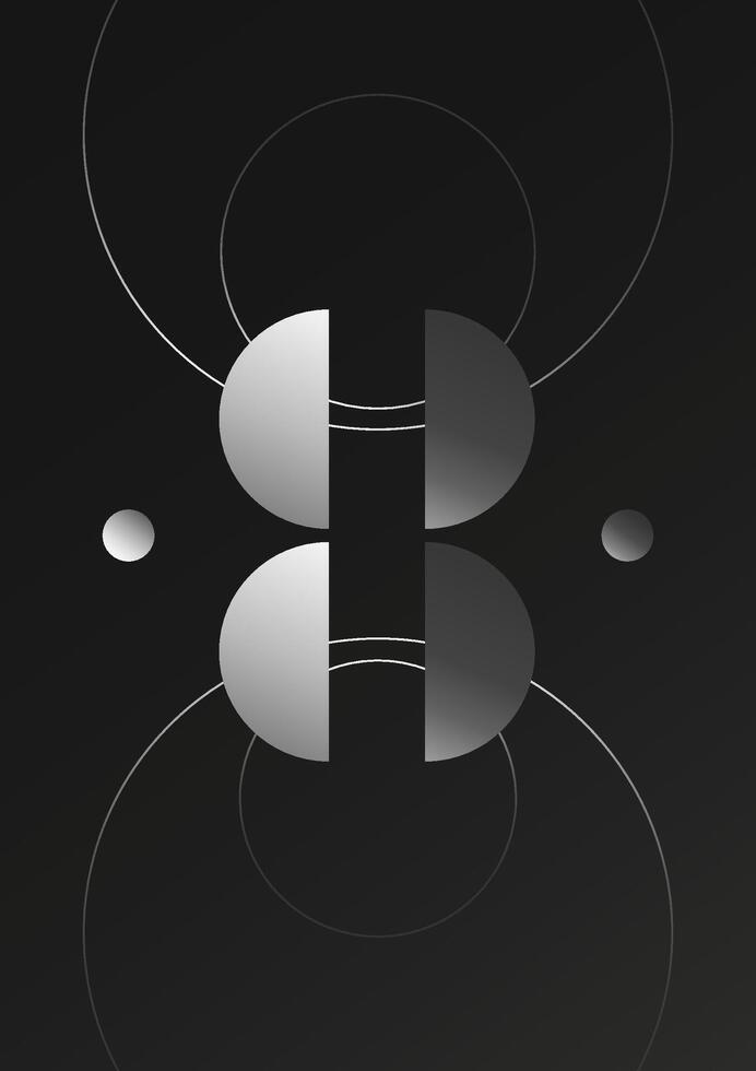 Abstract gradient shapes on a black background. Esoteric symbols, imitation planets. Pro Vector