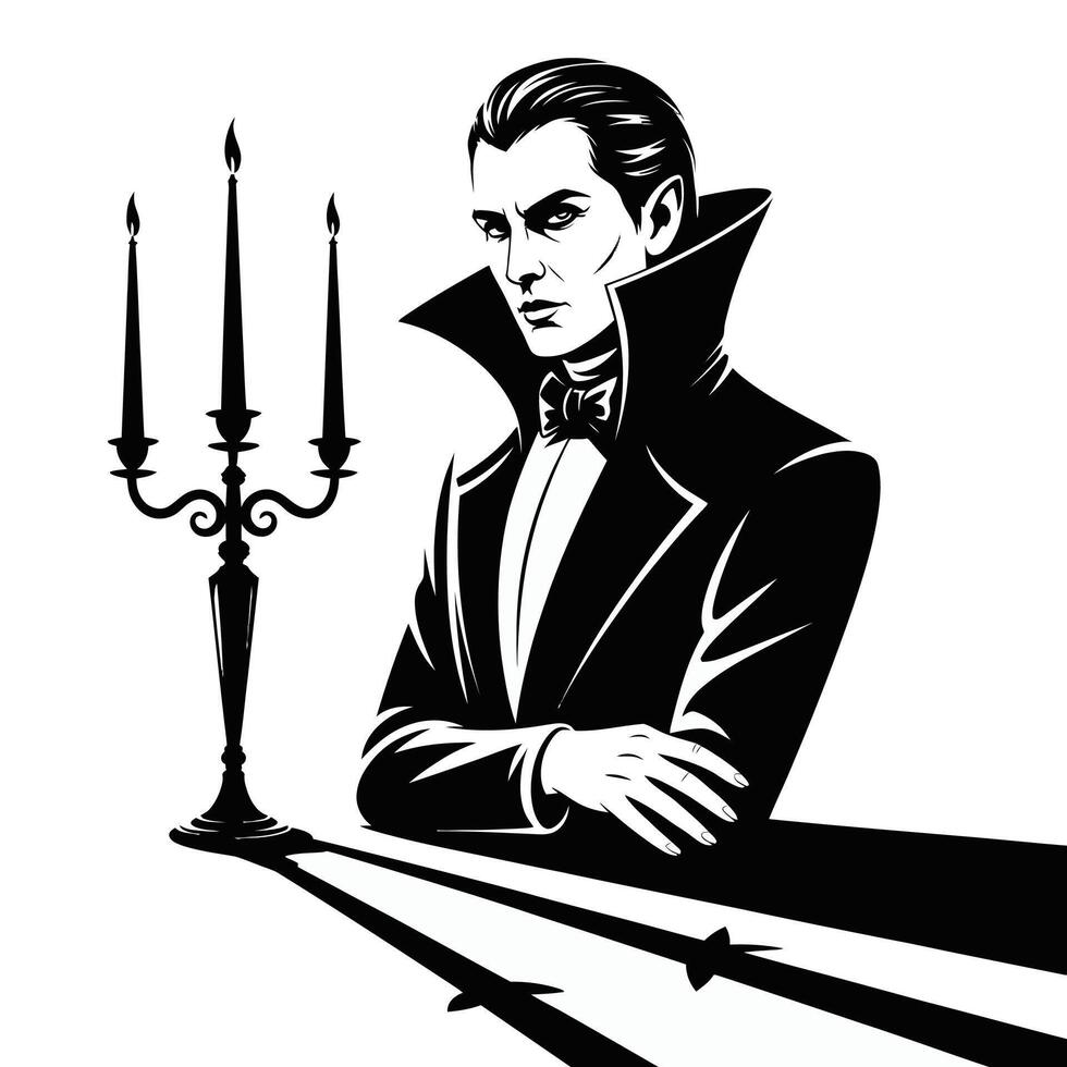Vampire in Tuxedo with Candelabra and Shadows Dracula Free Vector