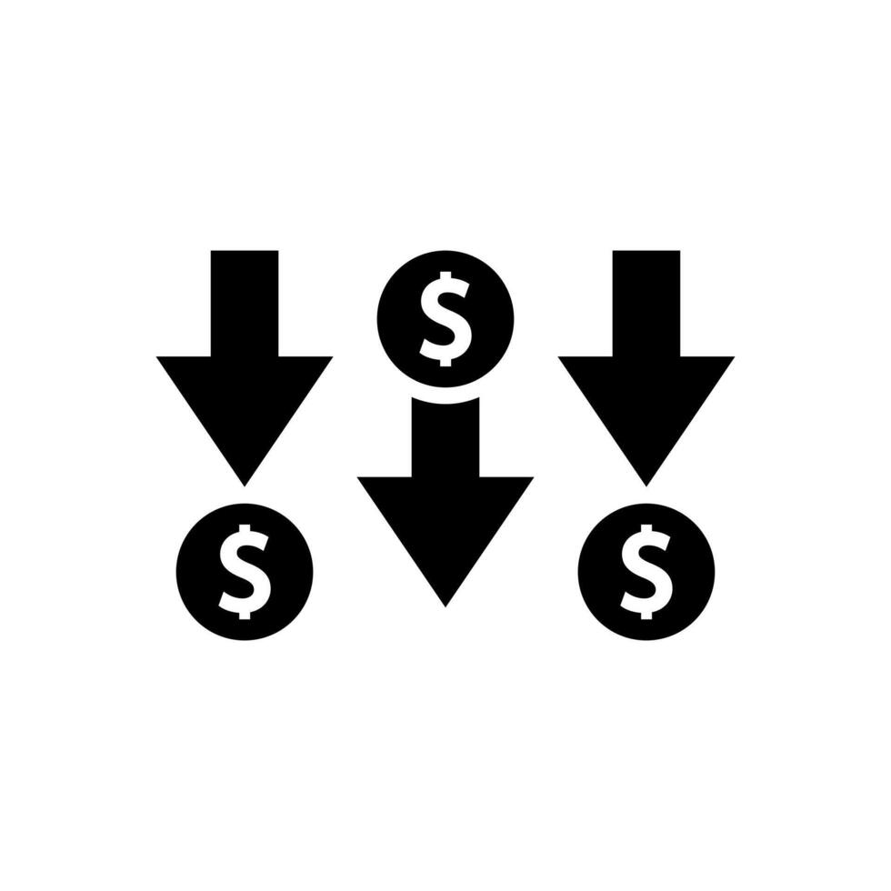 Dollar down icon. Money decrease symbol. Financial loss sign Pro Vector