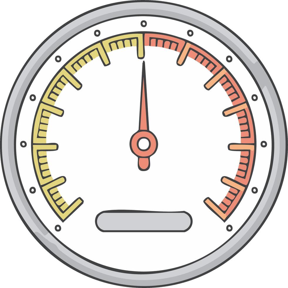 Illustration of a gauge showing progress, speed or measurement, with a needle pointing Pro Vector