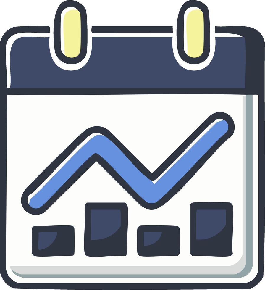 Doodle style calendar icon with business analytics graph for data reporting and progress tracking Pro Vector