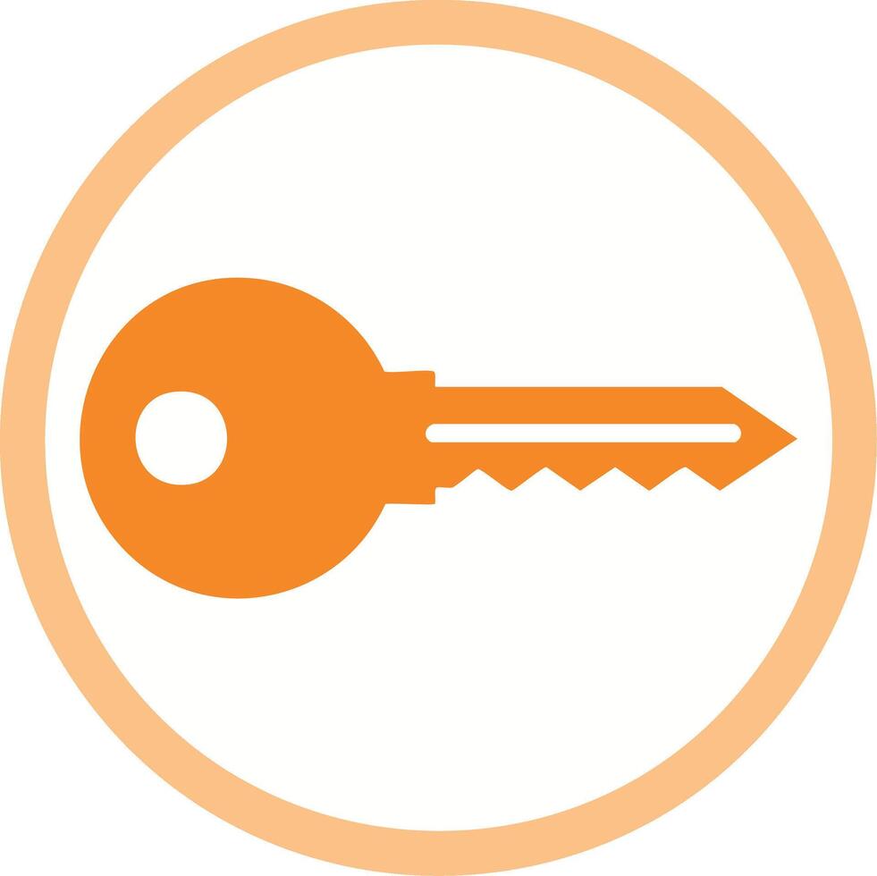 Security Door Key with Circle Frame in Orange and White, Access Protection Pro Vector