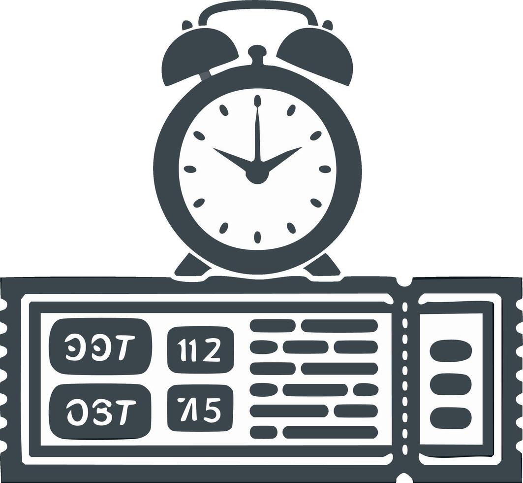 Classic alarm clock sitting on a generic event ticket for scheduling and important dates Pro Vector