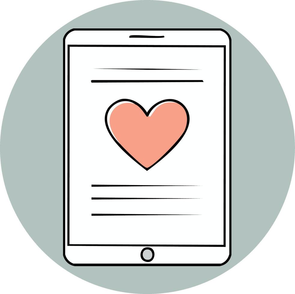 Digital Tablet Displaying a Love Heart Graphic within a Circular Frame for Social Media and Mobile Communications Pro Vector