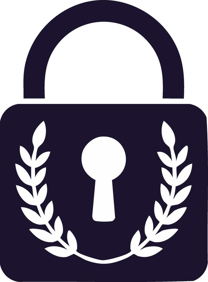 Padlock icon with keyhole and laurel wreath symbols for security concept Pro Vector