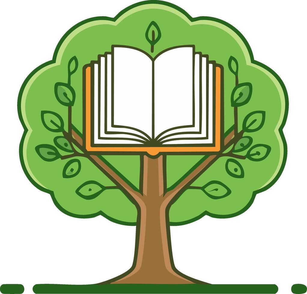Green tree with an open book nested in its branches representing knowledge learning and nature Pro Vector