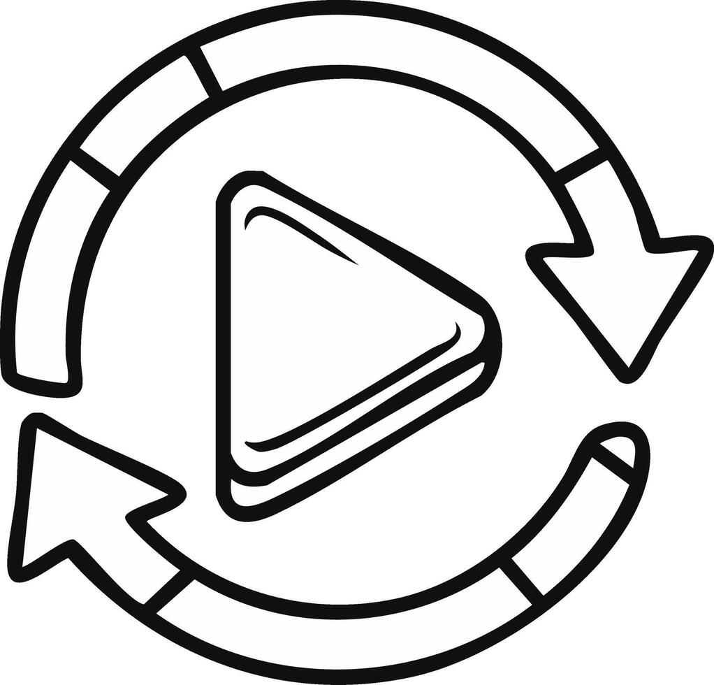 Play button icon with circular loading arrows indicating continuous playback or buffering Pro Vector