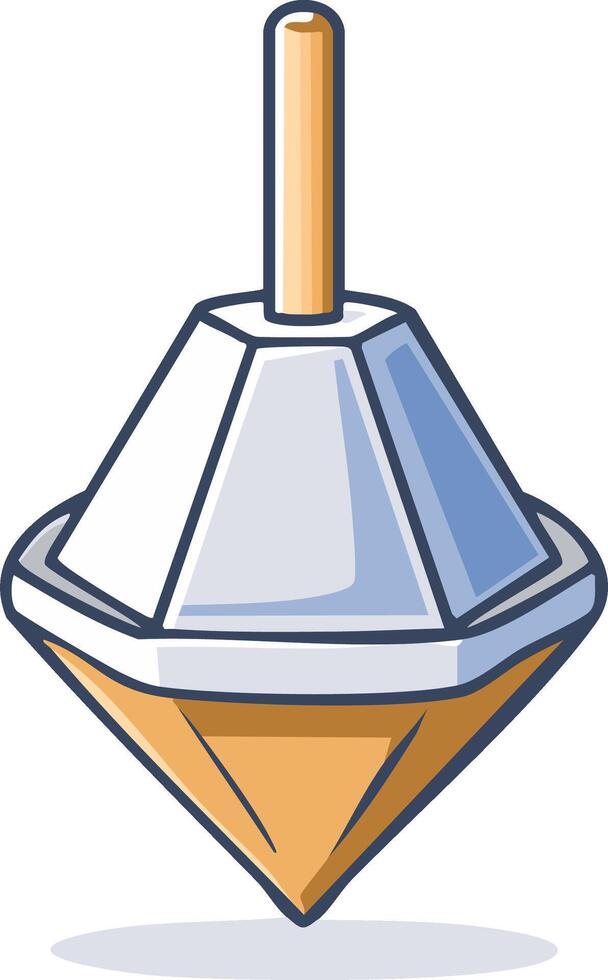 Stylized spinning top toy featuring a stick handle and conical shape with simple illustration Pro Vector