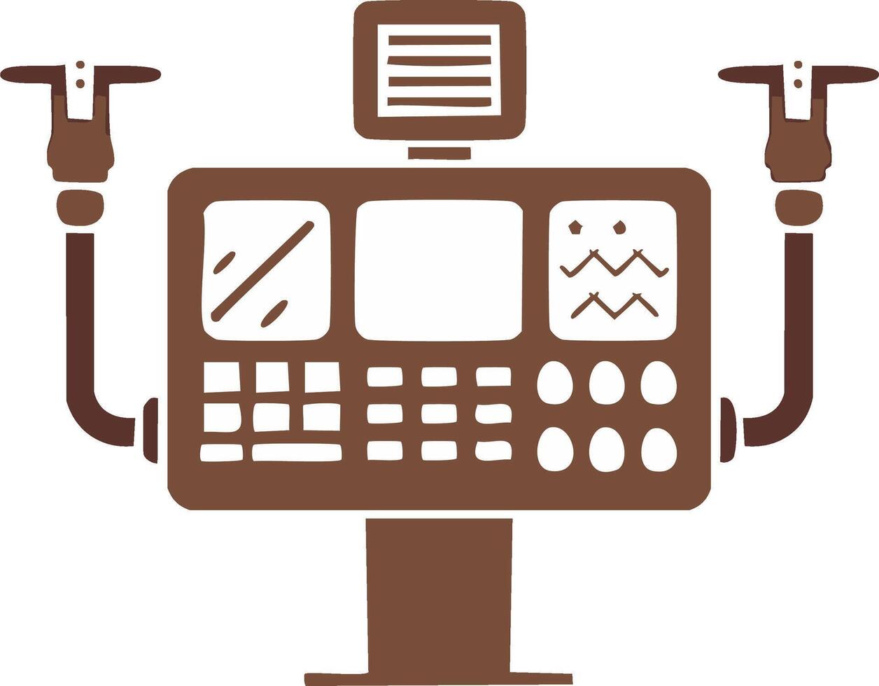 Industrial Machine Illustration with Screens and Controls, Brown, Simple Style, Production Equipment, System Management, Factory Automation Pro Vector