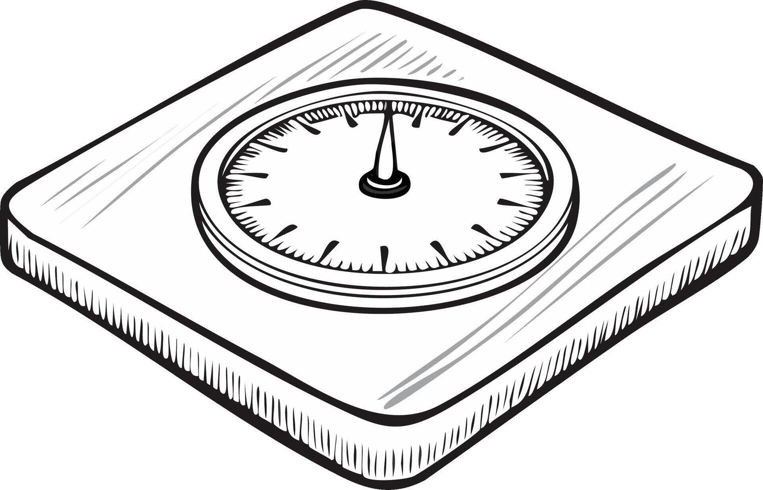 Hand drawn illustration of a round analog dial on a square platform Pro Vector