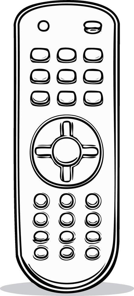 Simple Black and White Drawing of a Remote Control with Multiple Buttons and a Circular Navigation Pad Pro Vector