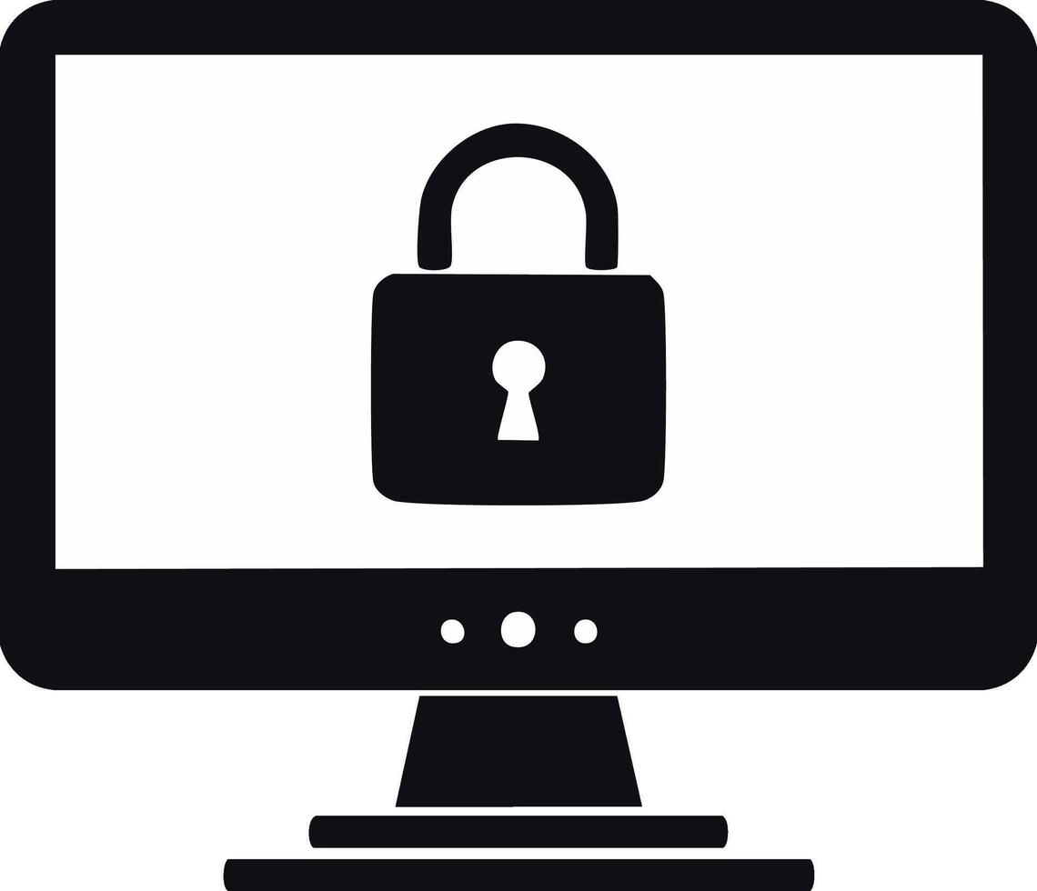 Desktop Computer Screen Displaying a Padlock Symbol Representing Security and Data Protection Pro Vector