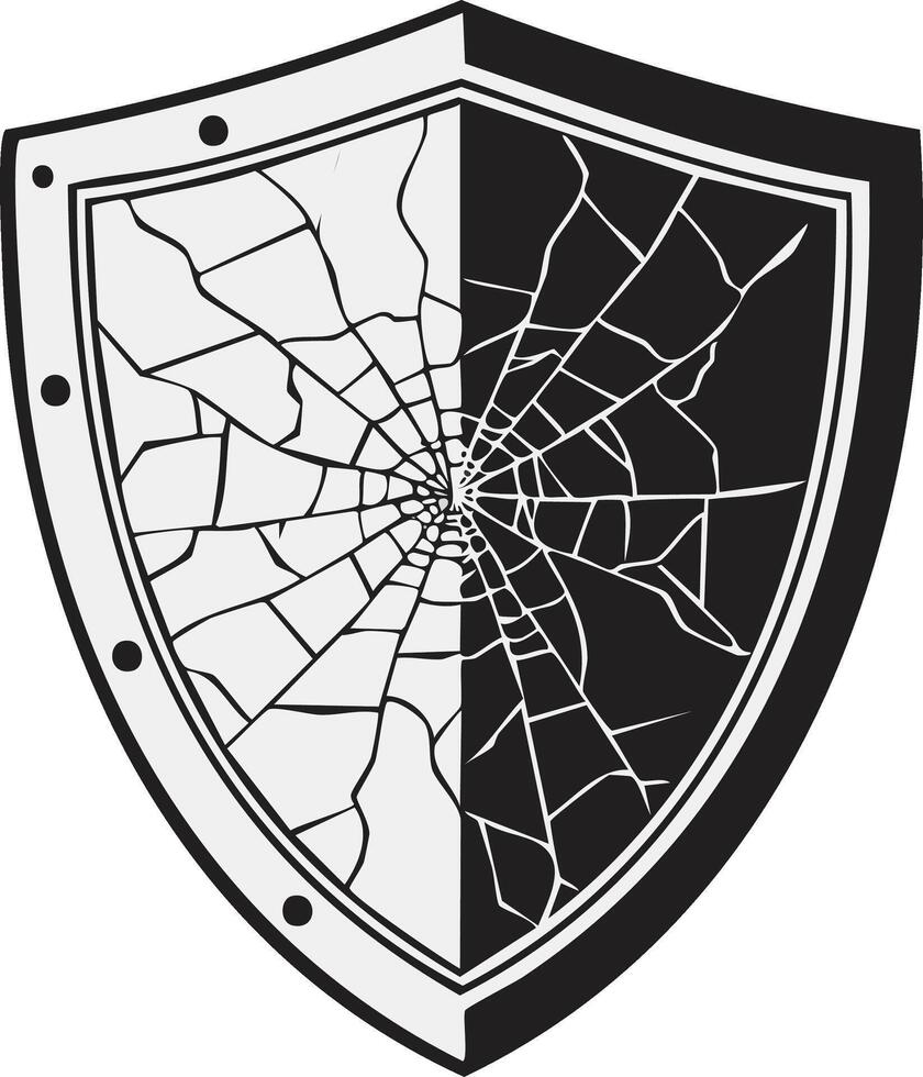 Damaged Broken Security Shield Depicting Cyber Attack or System Failure Pro Vector