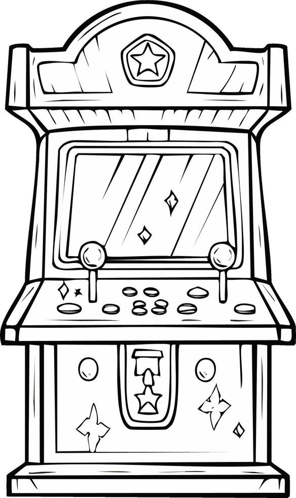 Classic Retro Arcade Game Machine Line Art Illustration with Joysticks Buttons and Screen Pro Vector