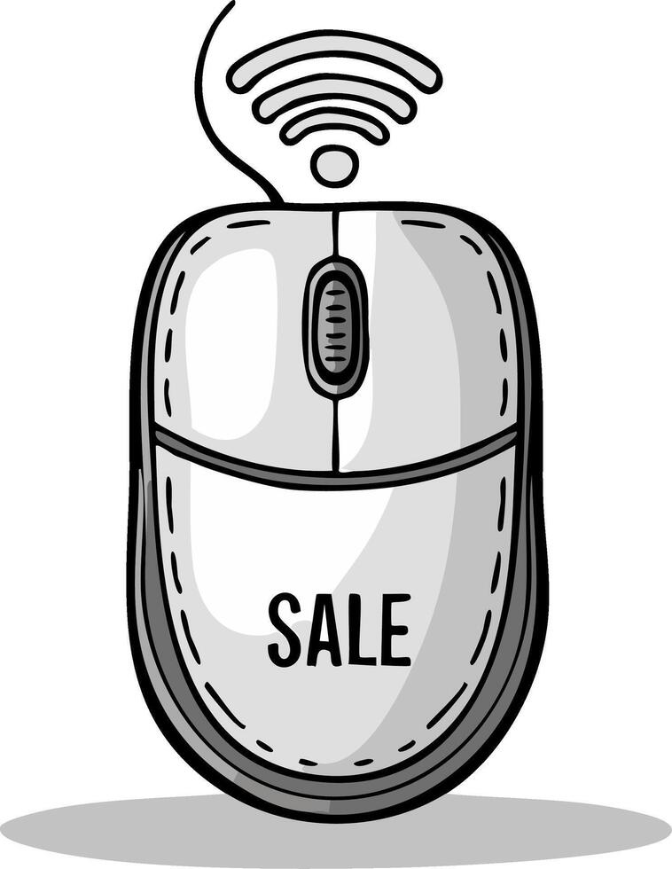 Hand drawn computer mouse with sale text and wifi symbol for online shopping concept Pro Vector