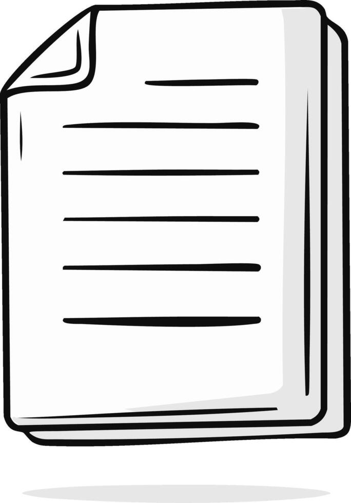 Hand drawn stack of blank white paper documents with abstract text lines and curled page corner Pro Vector