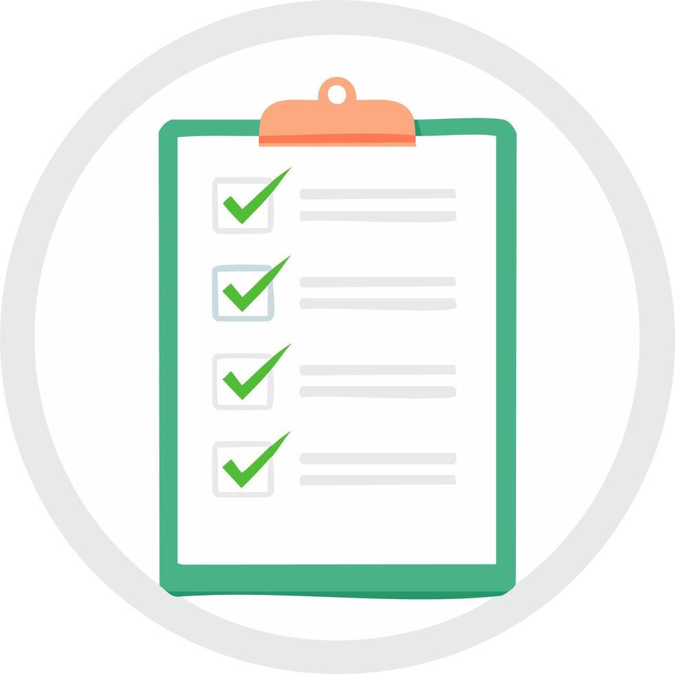Checklist on Clipboard with Four Check Marks, Done List Illustration Pro Vector