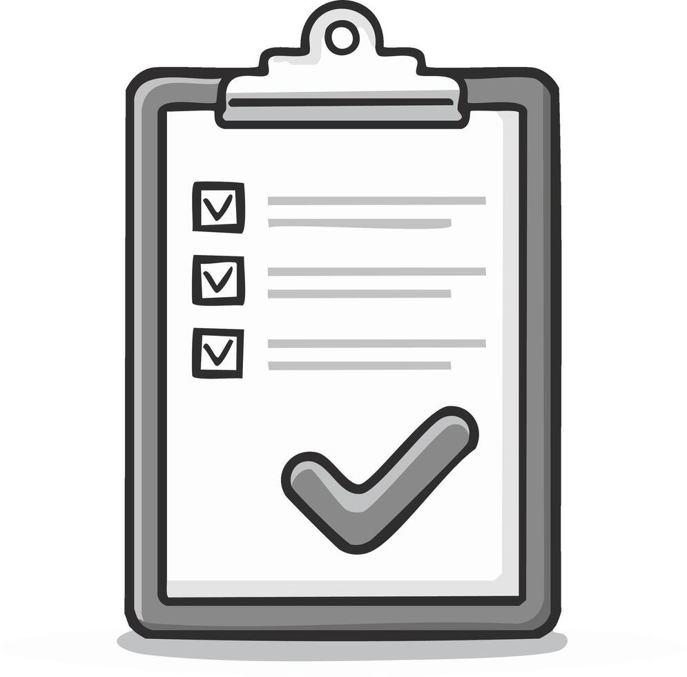 Simple hand drawn clipboard icon featuring a completed to do list with checkmarks and a verification sign Pro Vector