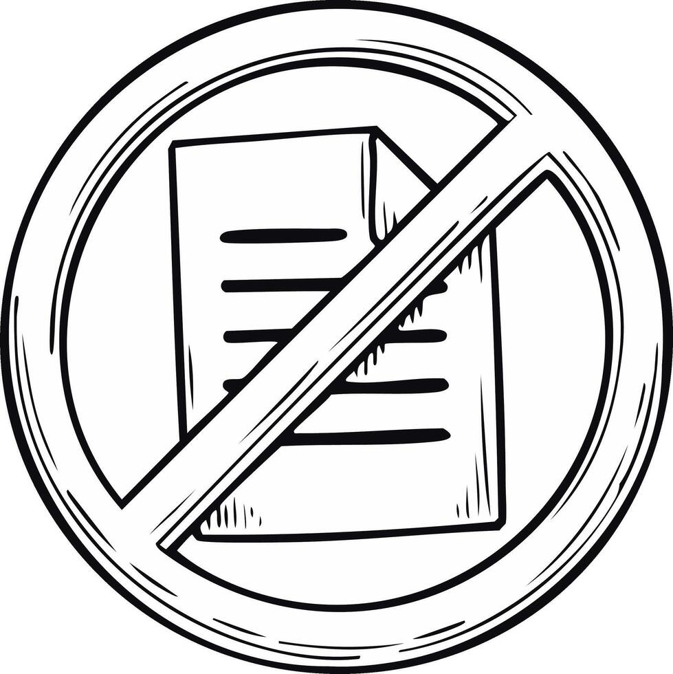 Hand-drawn prohibition symbol over a document illustration, representing no paper or document allowed Pro Vector