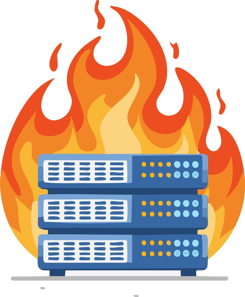 Burning Server Stack Data Loss Illustration Fire Damaged Computer System Hardware Failure Problem Concept Pro Vector