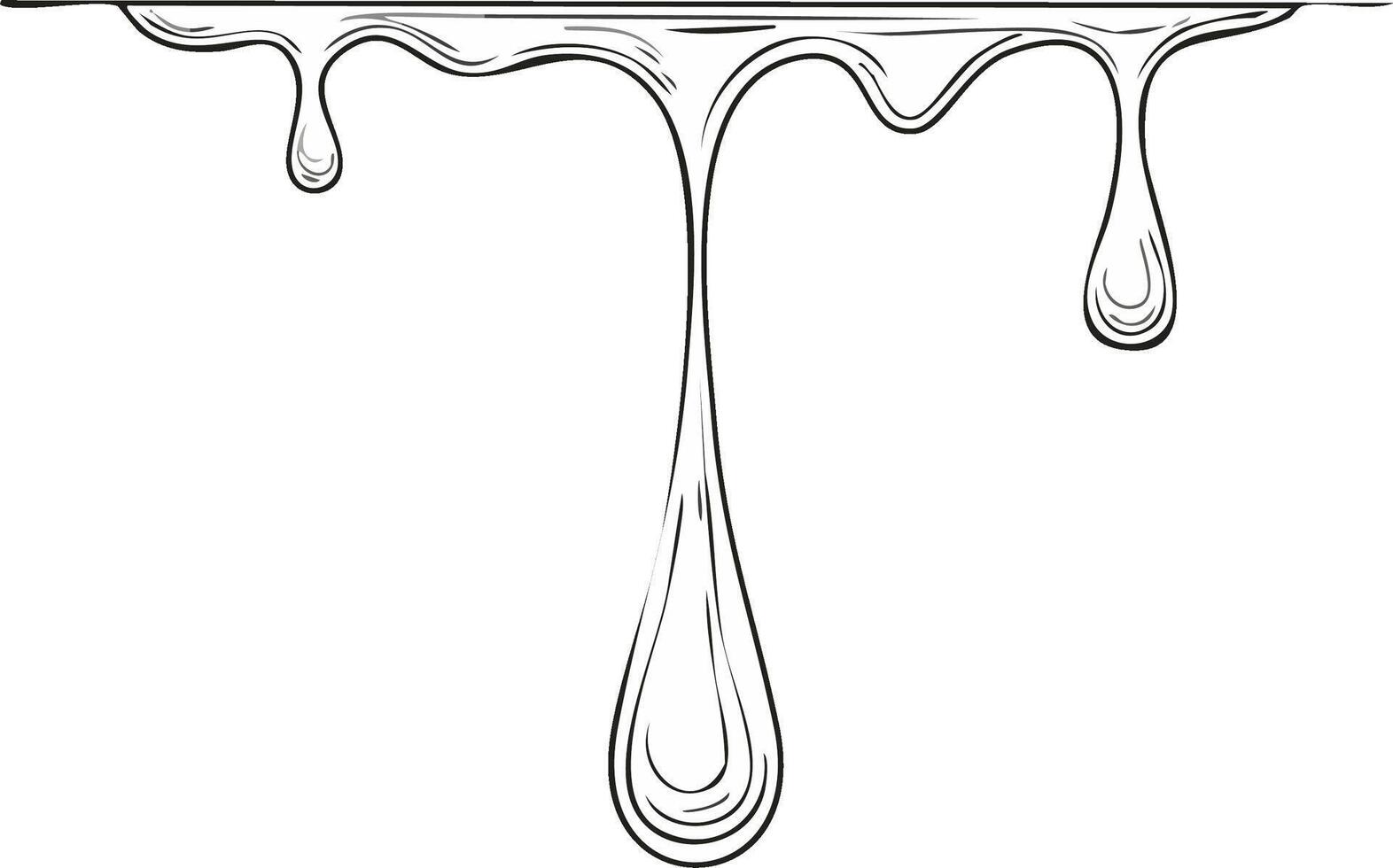 Dripping liquid illustration with three different flowing drops from the top. Outline design Pro Vector