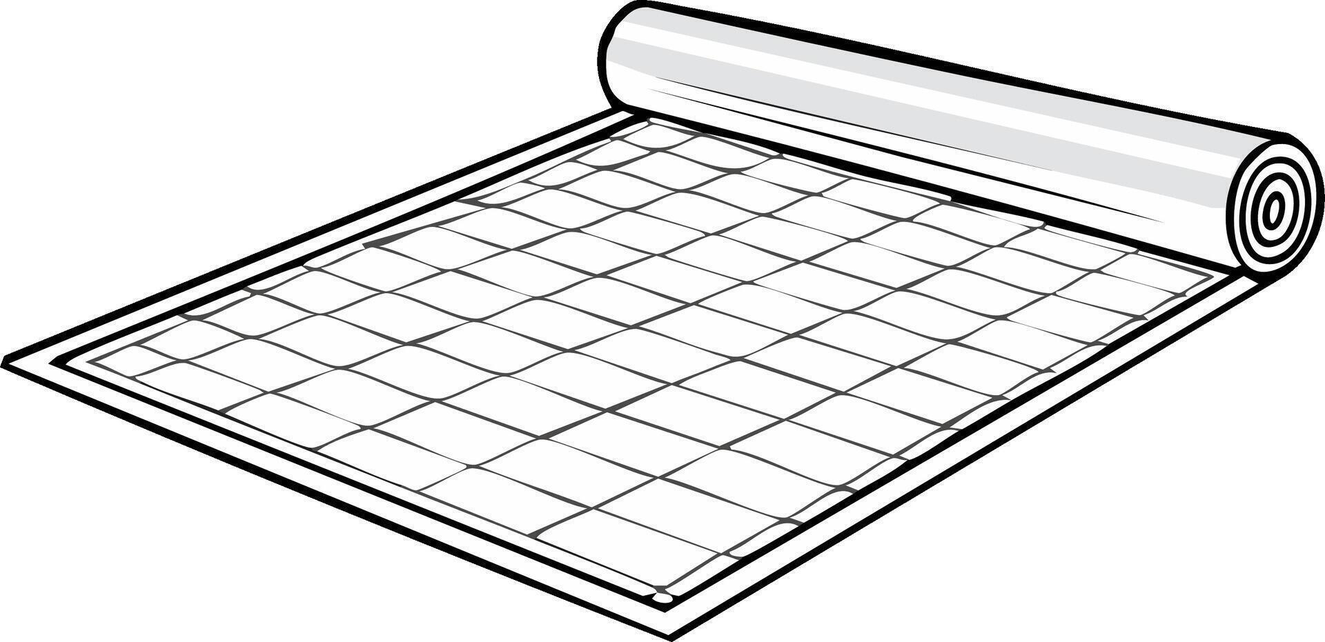 Unrolled Gridded Pattern Mat Design with Rolled Top Edge in Black and White Illustration Pro Vector