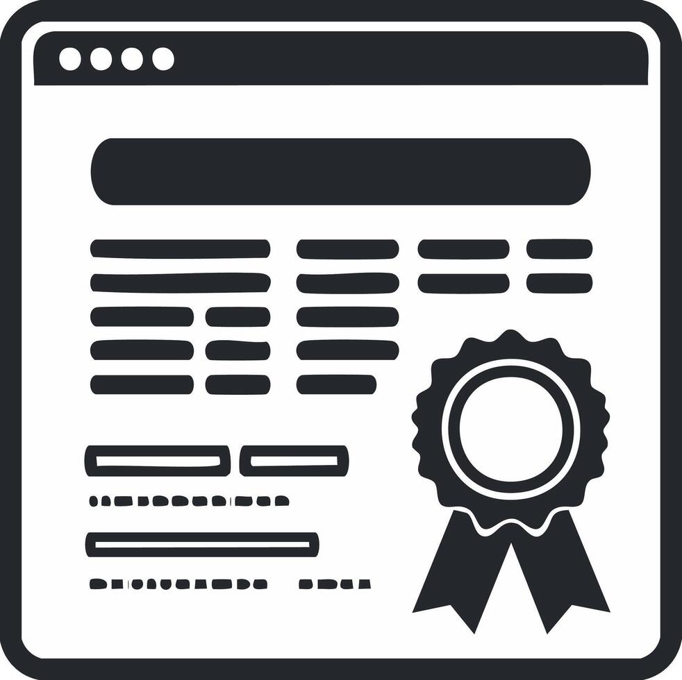 Digital certificate or diploma displayed on a computer screen with a seal of approval icon Pro Vector