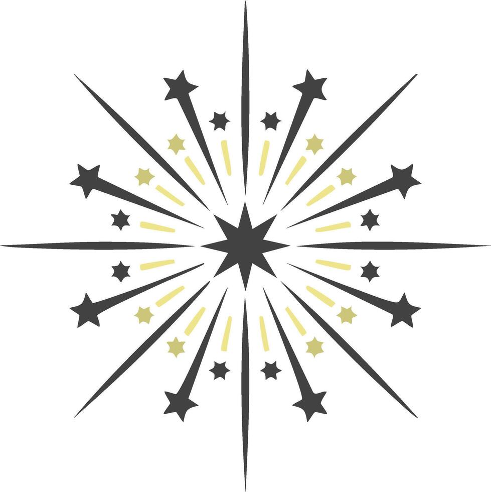 Exploding starburst with radiating lines and small stars in dark gray and gold Pro Vector
