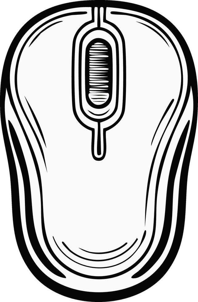 Black and white illustration of a computer mouse device, drawing style Pro Vector