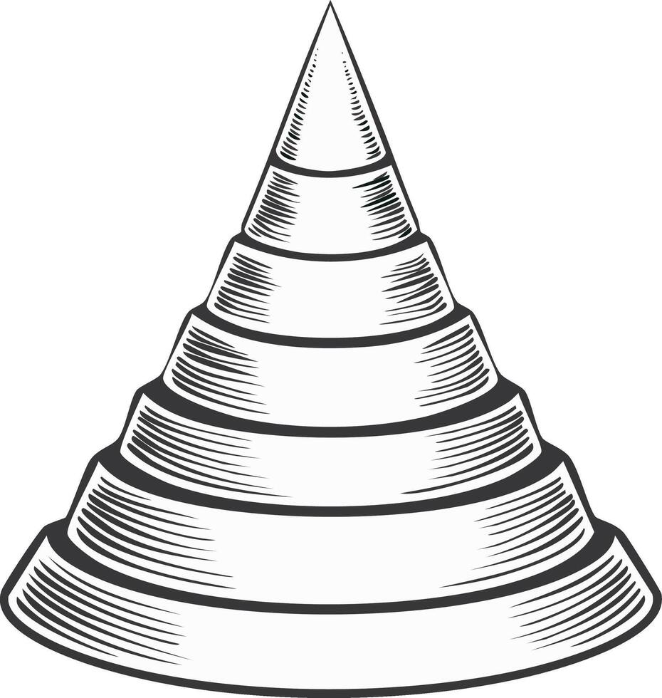 Abstract layered pyramid with engraved hatching texture in black and white Pro Vector