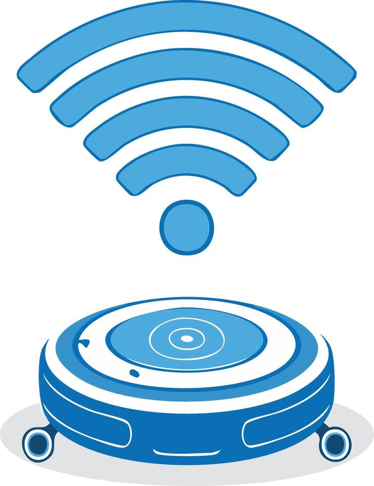 Robotic vacuum cleaner with wireless connectivity symbol representing smart home technology and automation Pro Vector