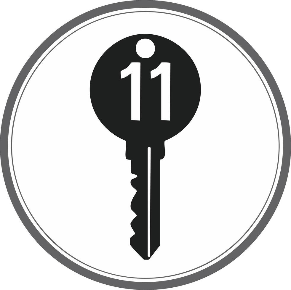 Black and White Key Symbol with Number Eleven Inside a Round Frame Icon Pro Vector