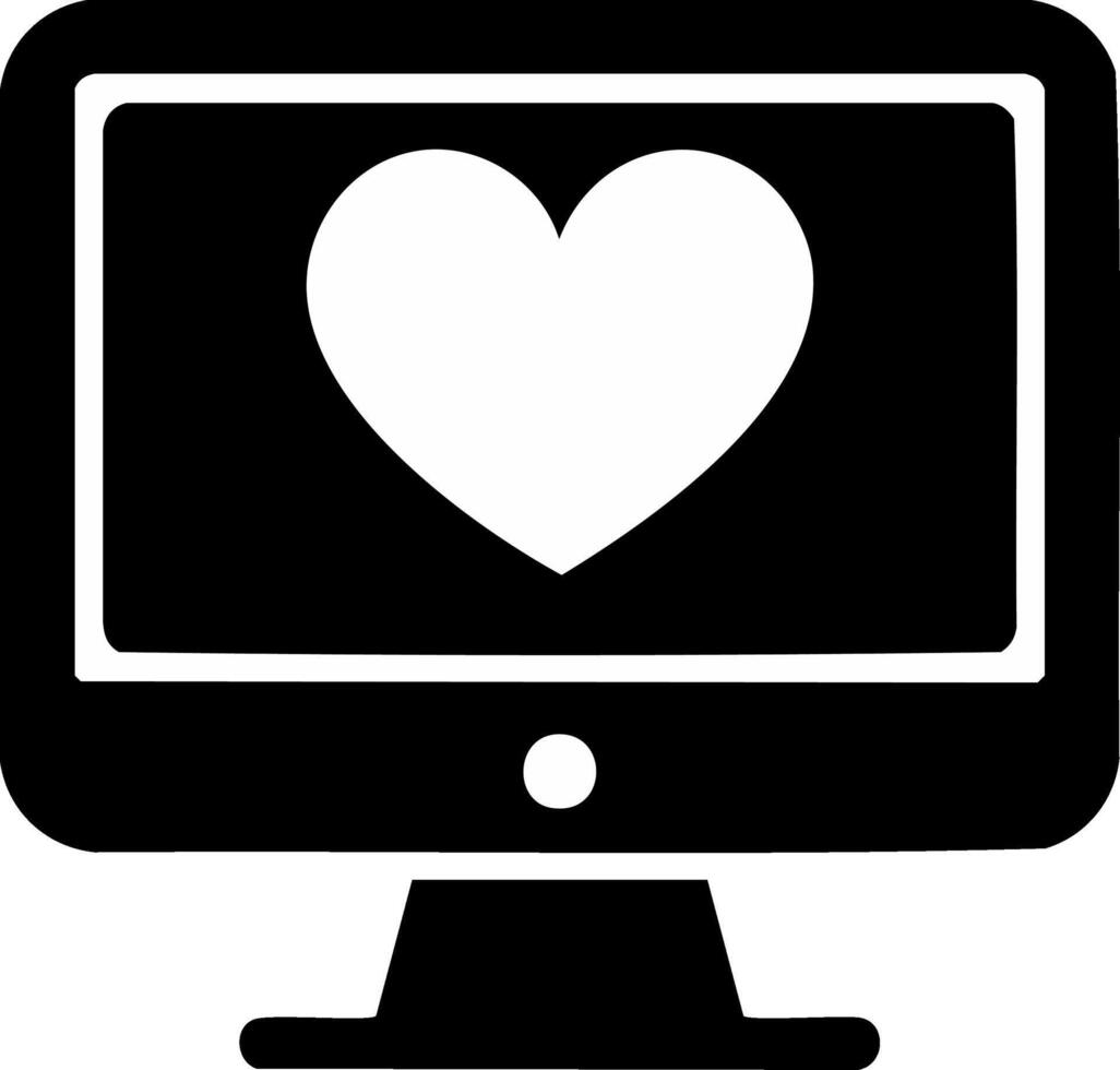 Monitor Displaying Heart Shape, Symbol of Affection, Love on Computer Screen, Data Information, Connection on Online Dating Website Pro Vector