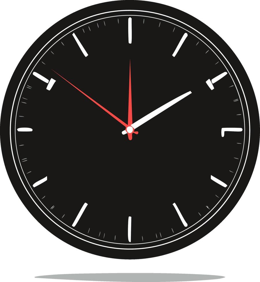 Modern minimalist black analog clock face with sharp white hour minute hands and a vibrant red second hand illustration Pro Vector