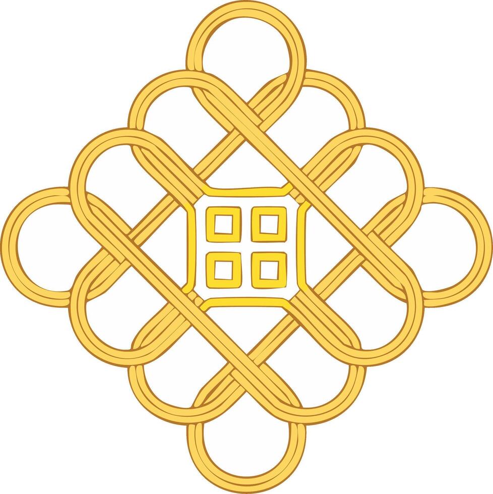 Decorative Gold Interlocking Square Knot Design Featuring Repeated Geometric Loops and Central Cell Pattern Pro Vector