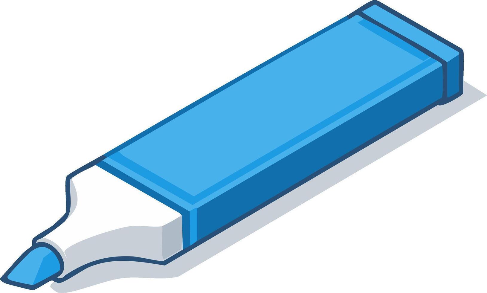 Blue highlighter pen with a chisel tip shown in an isometric view Pro Vector