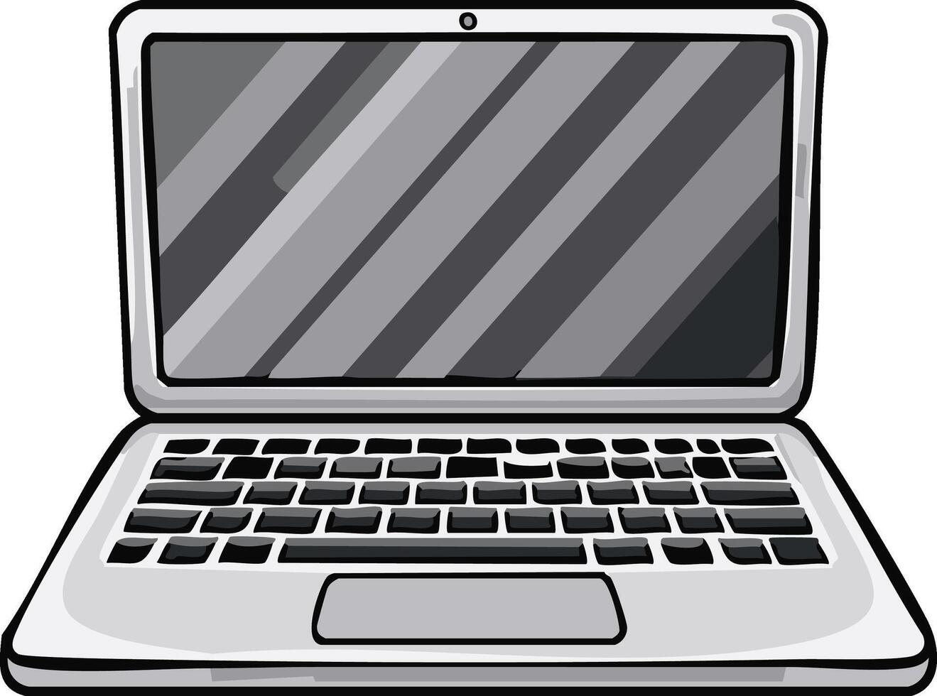 Cartoon illustration of a laptop computer with keyboard, screen, and trackpad for education, work, or design projects Pro Vector
