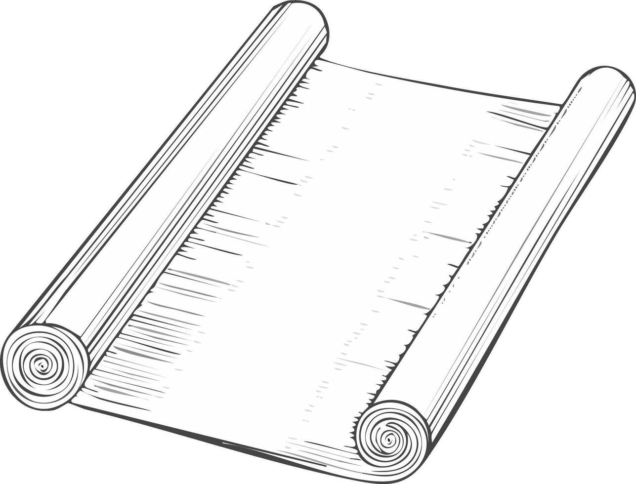Hand-Drawn Sketch of Unfurling Scroll with Rolled Ends on White, Parchment Paper, Ancient Design Pro Vector