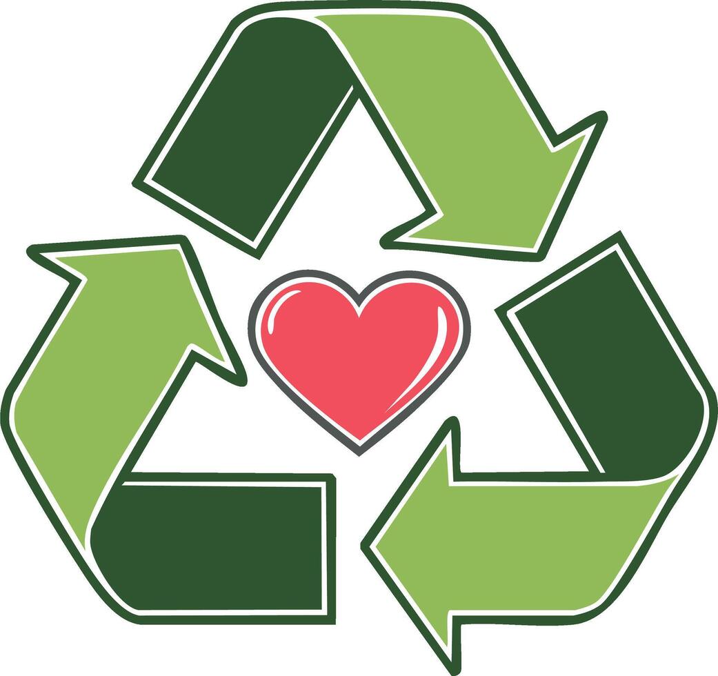 Recycle symbol with a heart in the center symbolizing love for the planet and eco-friendly practices Pro Vector