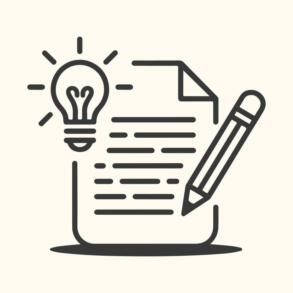 Art of a light bulb symbolizing an idea next to a document with a pencil, representing writing and creativity, isolated on a light background Pro Vector